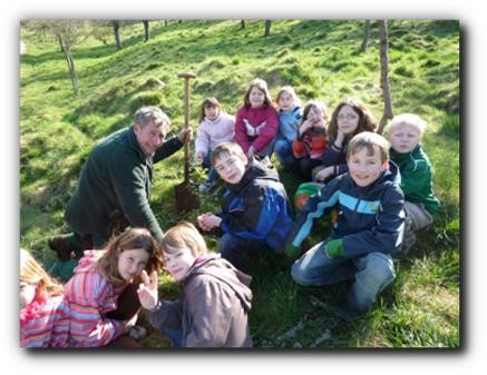 Die Schulkinder pflanzten unter der sachkundigen Leitung Wenzels den Baum des Jahres 2011, die Elsbeere sowie vier weitere Bäume, die ebenfalls in den letzten Jahrzehnten zum Baum des Jahres gekrönt wurden: